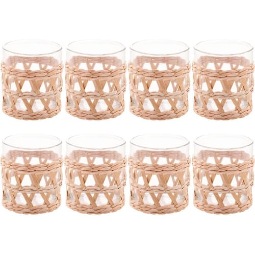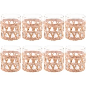 Conjunto 8 Copos Baixos de Vidro Wolff com Sisal 320ml Decorados Fibra Natural Rústicos.