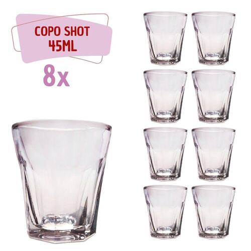 Conjunto 8 Copos Shot Vidro Tequila Cachaça Dose 45ml Bar