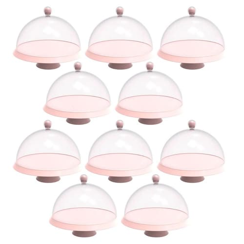 Conjunto 8 Porta Bolos Tortas 25cm com Cúpula e Pé Rosa Confeitaria Hotel Bubble Crippa.
