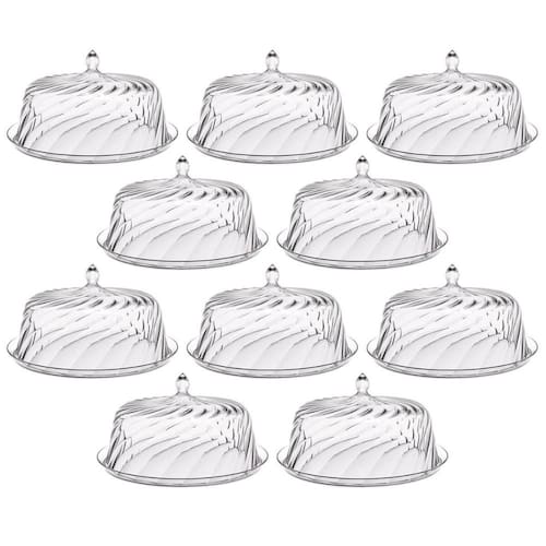 Conjunto 8 Porta Bolos Transparente com Cúpula 25cm Tortas Doces Padaria Hotel Crippa.