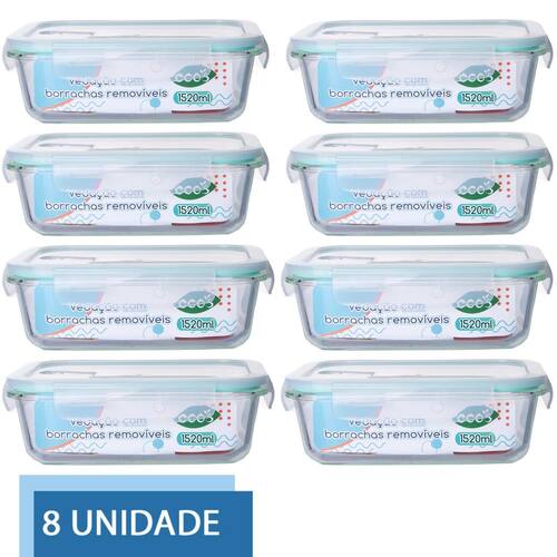 8 Pote de Vidro 1520ml com Tampa Hermética