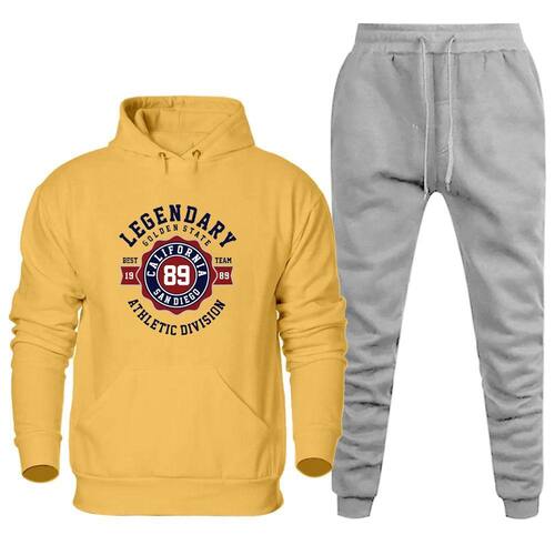 Conjunto Abrigo de Frio Moletom Canguru Estampada Legendary California Calça Comprida Flanelada - Amarelo - G