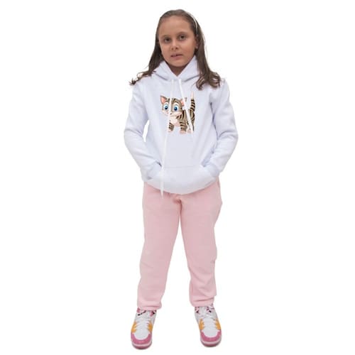 Conjunto Abrigo Infantil Blusa Estampa Gato Com Calça Comprida de Frio Confortavel Tecido Macio - Branco - 14