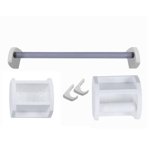 Kit plástico para banheiro com 5 peças branco astra Marca: astra Kit Plástico para banheiro com 5 peças branco astra é composto por 01 Papeleira de sobrepor, 01 saboneteira de sobrepor com base frisada para Evitar que o sabonete escorregue , 02 cabide de sobrepor para pendurar Toalha ou objetos e 01 conjunto com para toalha. Prático e ideal para deixar o banheiro mais Organizado. Produzido em plástico resistente e fácil de limpar. Possui Design convencional na cor branca, sendo fácil de combinar com os demais Acessórios. Acompanha kit de fixação que não deixa o parafuso aparente. Composto por uma papeleira, uma saboneteira e um cabide de sobrepor. Prático. Organiza o ambiente. Design convencional. Resistente. Fácil instalação. Acompanha kit de fixação. Recomendações de uso Para organizar objetos e decorar ambientes. 100% lavável para limpeza utilize esponja macia e sabão/detergente neutro. Capacidadenão se aplica Tipoacessórios Manualnãoinformações as cores do produto podem sofrer variações de acordo com o dispositivo, a iluminação do ambiente ou a sua percepção visual. Fotos meramente ilustrativas. Os objetos que compõem a foto ambientada não acompanham o produto. Equipe vtb soluções para o lar Marca: Não Informado