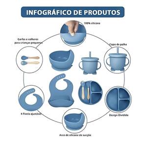 Introduza os seus pequenos ao mundo dos alimentos sólidos com este encantador conjunto de refeição infantil, composto por 8 peças. Fabricado em silicone de qualidade alimentar, bpa free e com cabos de madeira ecológica, oferece segurança e durabilidade.