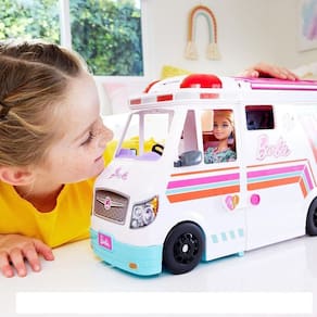 Conjunto Ambulância De Resgate Da Barbie Com Luz E Som - Mattel Hkt79 Com a diversão 2 em 1, o carro e conjunto Barbie Care Clinic permitem que as crianças cuidem dos pacientes em qualquer lugar. As crianças podem empurrar a ambulância para o resgate, com luzes e sons ativados com o toque de um botão. Abra o carro para ele se transformar um conjunto de cuidados clínicos com consultório médico, recepção e sala de espera com loja de presentes. Os aspirantes a médicos e enfermeiros podem criar todos os tipos de histórias médicas com mais de 20 acessórios, como mesa de exames que se ajusta, muletas, exames de raio-X, estetoscópio e muito mais Com uma brincadeira completa para inspirar a imaginação e os sonhos, a Barbie Care Clinic é um excelente presente para crianças a partir de 3 anos.