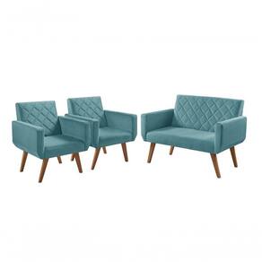 Conjunto Anabelle 2 Poltronas De 1 Lugar 1 Poltrona 2 Lugares Braço Unidecor Turquesa - Blush