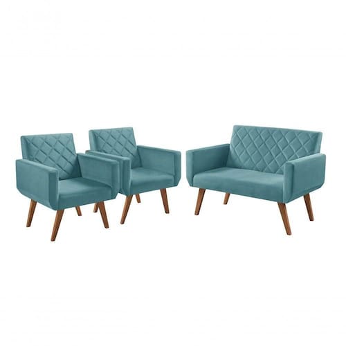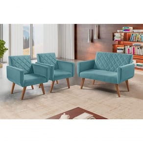 Conjunto Anabelle 2 Poltronas De 1 Lugar 1 Poltrona 2 Lugares Braço Unidecor Turquesa