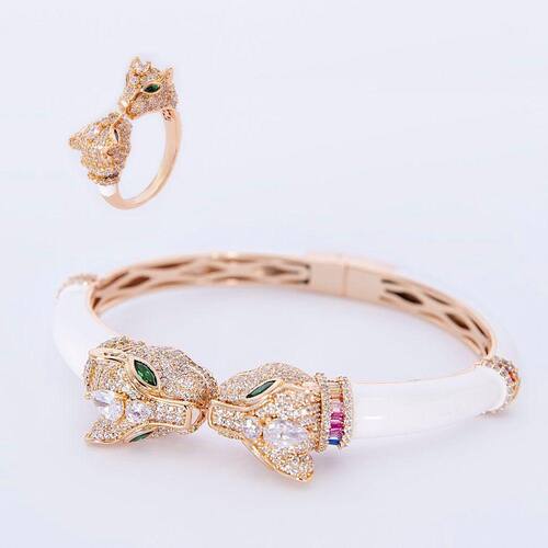 Conjunto Anel e Bracelete Pantera em Resina Branca Tamanho 6cm -