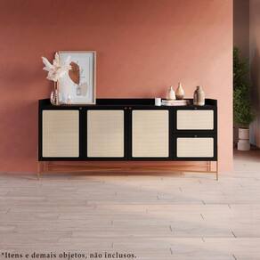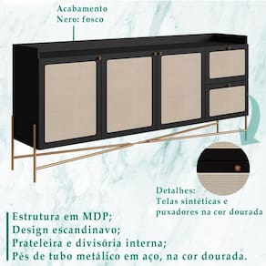 Conjunto Aparador e Balcão Buffet, Linha Oslo Artesano. Traz como característica um traço artesanal, suave, acolhedor e sofisticado. Estrutura em MDP de 15mm, acabamento em pintura BP na cor Hanover (Fosco), e Pés de tubo metálico em aço com pintura epóxi na cor dourada. Portas com dobradiças metálicas com proteção anticorrosão, balcão buffet com 02 gavetas com corrediças telescópicas garantindo um abre e fecha leve e suave, e aparador com 02 gavetas com corrediças metálicas simples, puxadores de poliestireno na cor Dourado, aplique palhinha de tela sintética (PVC com poliéster), fixada na parte externa das portas e gavetas, as extremidades dos pés possuem ponteiras plásticas para evitar atrito do móvel com o piso, afim de evitar acidentes, móveis com design escandinavo minimalista, é a opção ideal para um ambiente com toque sofisticado e ao mesmo tempo aconchegante. Mais produtos da Linha Oslo, você encontra em nosso site, podendo fazer a composição completa para sua casa, são diversos itens com design prático e funcional para tornar a vida mais facil e a casa mais alegre. Estes móveis chegarão em sua casa separados em 04 volumes.