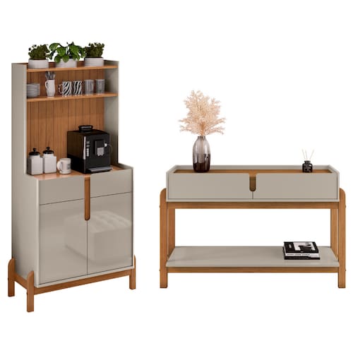 Esse Conjunto de Aparador e Cantinho do Café é perfeito para a sua sala de jantar ou de estar, com seu charme industrial para a renovação do seu ambiente elegante e moderno.