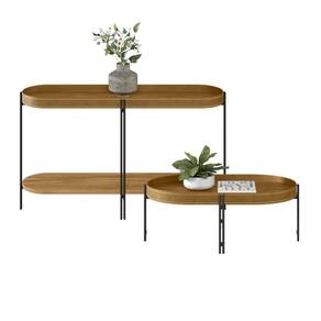 O Conjunto Aparador Mesa de Centro Monaco Linea Brasil O Conjunto Aparador e Mesa de Centro Monaco com Pés metálicos Linea Brasil une sofisticação e modernidade para transformar seu ambiente. Composto pelo Aparador com Pés Metálicos e a Mesa de Centro 93cm, ambos apresentam estrutura em aço, tampo arredondado e acabamento em couro ecológico com costuras aparentes, garantindo um toque de elegância e charme. O design refinado e os materiais de alta qualidade fazem desse conjunto a escolha perfeita para compor sua decoração com estilo.