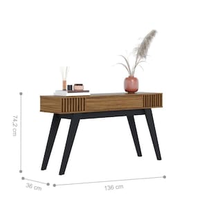 O Aparador possui uma gaveta multi, ripas decorativas em suas laterais, além de um tampo espaçoso que pode ser para decorações, possibilitando a disposição de taças, bebidas e demais objetos