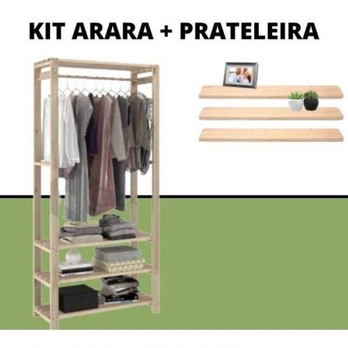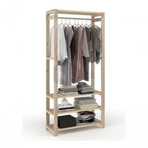 - Estante arara com prateleiras e estrutura em madeira maciça de Pinus