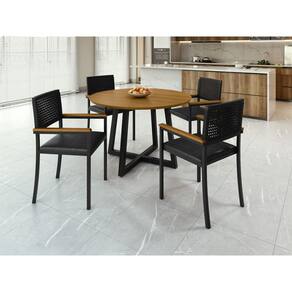 Faz parte do anúncio: 1 Mesa Laminada 1,20m - Coliseu - Paonanda Decor 4 Cadeiras Metálicos com Braço - Madri - Paonanda Decor Obs.: Não acompanha objetos decorativos. Indicado para uso em áreas internas e semi-abertos, LIVRES DE CHUVA
