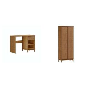 O conjunto da Linha Prata da Finestra, formado pelo Armário Organizador 2 Portas e pela Escrivaninha 1 Gaveta, é ideal para escritório ou home office, unindo organização, funcionalidade e estilo. Produzidos em madeira maciça e MDF com acabamento em verniz acetinado PU/UV, garantem durabilidade e sofisticação. A escrivaninha oferece gaveta prática para materiais de trabalho ou estudo, enquanto o armário organiza documentos, pastas e objetos essenciais, mantendo o ambiente limpo e funcional. Ideal para quem busca móveis modernos, versáteis e com design refinado, transformando seu espaço de trabalho em um ambiente elegante e organizado. Suporta Até (kg): 50 kg Acabamento: Pintura UV Altura do Conjunto: 179 cm Ambiente: null Ambiente Principal: Escritório Cor: Freijó Informação Complementar: 1x Armário Organizador 2 Portas MDF e Madeira Maciça Linha Prata Freijó Largura: 82,5 cm Altura: 179 cm Peso: 52 kg Profundidade: 40,5 cm Necessita Montagem: Sim