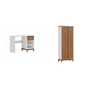 O conjunto da Linha Prata da Finestra, formado pelo Armário Organizador 2 Portas e pela Escrivaninha 1 Gaveta, é ideal para escritório ou home office, unindo organização, funcionalidade e estilo. Produzidos em madeira maciça e MDF com acabamento em verniz acetinado PU/UV, garantem durabilidade e sofisticação. A escrivaninha oferece gaveta prática para materiais de trabalho ou estudo, enquanto o armário organiza documentos, pastas e objetos essenciais, mantendo o ambiente limpo e funcional. Ideal para quem busca móveis modernos, versáteis e com design refinado, transformando seu espaço de trabalho em um ambiente elegante e organizado. Suporta Até (kg): 50 kg Acabamento: Pintura UV Altura do Conjunto: 179 cm Ambiente: null Ambiente Principal: Escritório Cor: Off White/Freijó Informação Complementar: 1x Armário Organizador 2 Portas MDF e Madeira Maciça Linha Prata Off White/Freijó Largura: 82,5 cm Altura: 179 cm Peso: 52 kg Profundidade: 40,5 cm Necessita Montagem: Sim