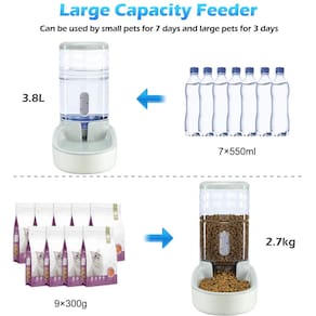 O alimentador de cães e gatos de café do companheiro de estimação usa tecnologia de alimentação por gravidade para dispensar alimentos secos quando o animal esvazia a tigela, prolongando assim o tempo entre dois reabastecimentos. - Alimentador e dispensador de água para cães e gatos: 1 alimentador automático para gatos, dispensador de água, 1. conjunto de alimentador e bebedouro adequado para cães ou gatos pequenos e médios. - Alimentador de animais de estimação de grande capacidade: grande capacidade de 3,8 L, pode durar cerca de 7 dias para animais de estimação pequenos, 3 dias para animais de estimação grandes. Você pode ter certeza de ir para férias, trabalho, festa, não se preocupe se os animais de estimação ficarão com fome. A tigela dobrável pode resolver o problema de alimentação quando você leva seus animais de estimação para passear. - Material do conjunto de alimentador automático de gatos: material 100% novo, resistente a quedas e pressão. É fácil de limpar, só pode ser lavado à mão e pode ser lavado diretamente com água. Recomenda-se lavar uma vez por semana. Há pés de borracha antiderrapante na parte inferior do alimentador para garantir uma colocação segura. - Design inovador do alimentador de gatos: o dispensador de água adota design de válvula em espiral e mola para garantir que nunca vaze. Com uma garrafa de armazenamento transparente, você pode recarregá-la a tempo quando a comida e a água estiverem gastas. - Pacote com 2 alimentadores automáticos para gatos: se você tiver algum problema depois de receber a mercadoria, imediatamente, resolveremos o problema para você a tempo.