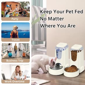 - Grande capacidade – cada alimentador e bebedouro para animais de estimação mede 15 x 30 x 33 cm. O alimentador automático para gatos pode conter cerca de 2,7 kg de comida e cerca de 1 galão de água, pode atender às necessidades de cães médios ou grandes por 3 a 7 dias. Se for um gatinho ou filhote, o alimentador pode chegar até 9 dias.