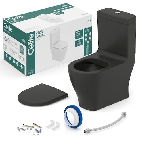 Com um desenho cheio de personalidade e único, a linha de produtos Celite Slim se impõe no banheiro criando uma atmosfera contemporânea. Acabamento: Fosco Acionamento da válvula de descarga: Duplo Acompanha anel de vedação: Sim Acompanha assento: Sim Acompanha fixação: Sim Acompanha Manual de Instalação: Sim Altura: 81,5 cm Ambiente Principal: Banheiro Assento com fechamento suave: Sim codigo_ean: 7896902190948 Comprimento: 63,5 cm Cor: Matte Black Cor do Produto: Matte Black Cor Predominante: Preto Economizador: Sim Informações Complementares: Tipo de fixação: VerticalCom furo de jato.Garantia: Louça sanitária 10 anos, assento e complementos de instalação 01 ano. Instruções de instalação: Leia antes da instalação o manual que segue dentro da caixa.https://youtu.be/98OksS1eysA Itens Inclusos: Bacia, Caixa, Assento, Anel de Vedação, Flexível, Conjunto de Fixação. Largura: 39 cm Manual de Montagem e Instalação: https://product-hub-prd.madeiramadeira.com.br/834477/documents/275749b3-2ae0-423c-a0fe-0b3de89dbd92anualbaciaecaixadedescarga.pdf Material Principal: Cerâmica Norma: NBR 16727 Orgão normatizador: ABNT Origem do Produto: Nacional Peso: 55,85 kg Recomendações de Uso, Manutenção e Limpeza: Realizar a limpeza com pano limpo, macio e levemente úmido. Não é recomendado o uso de produtos abrasivos. Saída de esgoto: Vertical Tecnologia: Ecoflush 3/6 litros Tipo de bacia com caixa: Bacia com caixa acoplada Tipo de sifão: Oculto
