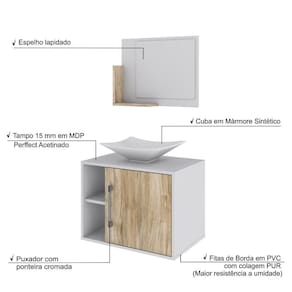 Sobre o ProdutoConjunto Balcão C/Cuba L38 e Espelheira Soft 600 Branco ChessDescrição do Produto:O Conjunto Balcão C/Cuba e Espelheira Soft 600 KTSF600 tem design compacto, perfeito para pequenos espaços, conta com uma prateleira lateral e uma cuba de apoio, além da linha Basic traz móveis funcionais e de design tradicional, aliando simplicidade e estilo para seu ambiente de banheiro!Itens Inclusos:1 Conjunto Balcão C/Cuba e EspelheiraDimensões dos Produtos:Gabinete: 60 x 40 x 45 cmEspelheira: 53 x 10,5 x 42 cmCuba 38,5 x 33 x 11,5 cmInformações Logísticas (Comp. X Prof. X Alt.) 64 x 45 x 26 cm - Peso: 20,45 KgPeso Total: 20,45 KgObservações:Não acompanha acessórios decorativos. Imagens meramente ilustrativas.Informações Técnicas / Características:- Cor do Produto: Branco Chess- Cor do Predominante: Branco- Marca: Compace- Modelo: KTSF600- Linha: Basic- Material: Mdp - Acabamento: Perffect Acetinado- Escala de Brilho: Fosco- Fita de Borda: Pvc- Possui Portas: 1- Tipo de Porta: Bater- Tipo da Dobradiça: Metálica - Material do Puxador: Abs- Possui Prateleiras: 2- Peso Máximo por Prateleira: 1 kg Espelheira / 3 kg Balcão- Possui Pés: Não, suspenso - Possui Espelho: Sim- Possui Vidro: Sim- Acompanha Cuba / Lavatório: Sim, de Mármore Sintético- Furação para Cuba / Lavatório: Não- Tipo da Cuba: Apoio- Cor da Cuba: Branca- Suporta Até (kg): 16 kg - Peso Lí.: 19,03Kg- Recomendações de Uso, Manutenção e Limpeza: Para a limpeza, utilize flanela seca ou pano macio levemente umedecido em água. Utilize um pano seco em seguida. Evite com produtos químicos (solventes, thinner, acetona, etc) e não utilize nenhum tipo de esponja de aço.- Necessita de Montagem: Sim / Acompanha Manual de Montagem- Complexidade da Montagem: Média: pode ser montado por mais de uma pessoa e/ou necessite de maior conhecimento para montagem.- Garantia: 6 meses Material: Mdp | Acabamento: Perffect Acetinado | Escala de Brilho: Fosco | Fita de Borda: Pvc | Possui Portas: 1 | Tipo de Porta: Bater | Tipo da Dobradiça: Metálica | Limite de unidades por venda: É possível comprar até 1 unidade por venda. | Comprimento: 60 | Largura: 40 | Quantidade máxima de pedido: 1 | Altura: 45 | Profundidade: 40 | Preço Tabelado: 307.89999999999998 | Cor: Multicolorido | Certificação de teste externa: Não Aplicável | Baterias são necessárias?: false | Palavras-chave de Pesquisa: Não aplicável | Fonte de energia: Não aplicável | Fabricante: Compace | Peso do item: | Exige montagem: | da peça: | Componentes incluídos: | Principais Características do Produto 1: | Principais Características do Produto 0: | Dimensões do item P x L x A: | Principais Características do Produto 2: | Is Fragile: | de caixas: | do modelo: | Quantidade de itens: Cor: Branco Chess C/Carvalho