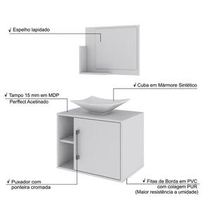 Conjunto Balcão C/cuba L38 E Espelheira Soft 600 - Branco Chess C/branco Chess Branco Chess C/branco Chess Sobre o ProdutoConjunto Balcão C/Cuba L38 e Espelheira Soft 600 Branco ChessDescrição do Produto:O Conjunto Balcão C/Cuba e Espelheira Soft 600 KTSF600 tem design compacto, perfeito para pequenos espaços, conta com uma prateleira lateral e uma cuba de apoio, além da linha Basic traz móveis funcionais e de design tradicional, aliando simplicidade e estilo para seu ambiente de banheiro!Itens Inclusos:1 Conjunto Balcão C/Cuba e EspelheiraDimensões dos Produtos:Gabinete: 60 x 40 x 45 cmEspelheira: 53 x 10,5 x 42 cmCuba 38,5 x 33 x 11,5 cmInformações Logísticas (Comp. X Prof. X Alt.) 64 x 45 x 26 cm - Peso: 20,45 KgPeso Total: 20,45 KgObservações:Não acompanha acessórios decorativos. Imagens meramente ilustrativas.Informações Técnicas / Características:- Cor do Produto: Branco Chess- Cor do Predominante: Branco- Marca: Compace- Modelo: KTSF600- Linha: Basic- Material: Mdp - Acabamento: Perffect Acetinado- Escala de Brilho: Fosco- Fita de Borda: Pvc- Possui Portas: 1- Tipo de Porta: Bater- Tipo da Dobradiça: Metálica - Material do Puxador: Abs- Possui Prateleiras: 2- Peso Máximo por Prateleira: 1 kg Espelheira / 3 kg Balcão- Possui Pés: Não, suspenso - Possui Espelho: Sim- Possui Vidro: Sim- Acompanha Cuba / Lavatório: Sim, de Mármore Sintético- Furação para Cuba / Lavatório: Não- Tipo da Cuba: Apoio- Cor da Cuba: Branca- Suporta Até (kg): 16 kg - Peso Lí.: 19,03Kg- Recomendações de Uso, Manutenção e Limpeza: Para a limpeza, utilize flanela seca ou pano macio levemente umedecido em água. Utilize um pano seco em seguida. Evite com produtos químicos (solventes, thinner, acetona, etc) e não utilize nenhum tipo de esponja de aço.- Necessita de Montagem: Sim / Acompanha Manual de Montagem- Complexidade da Montagem: Média: pode ser montado por mais de uma pessoa e/ou necessite de maior conhecimento para montagem.- Garantia: 6 meses Material: Mdp | Acabamento: Perffect Acetinado | Escala de Brilho: Fosco | Fita de Borda: Pvc | Possui Portas: 1 | Tipo de Porta: Bater | Tipo da Dobradiça: Metálica | Limite de unidades por venda: É possível comprar até 1 unidade por venda. | Comprimento: 60 | Largura: 40 | Quantidade máxima de pedido: 1 | Altura: 45 | Profundidade: 40 | Preço Tabelado: 307.89999999999998 | Cor: Multicolorido | Certificação de teste externa: Não Aplicável | Baterias são necessárias?: false | Palavras-chave de Pesquisa: Não aplicável | Fonte de energia: Não aplicável | Fabricante: Compace | Peso do item: | Exige montagem: | da peça: | Componentes incluídos: | Principais Características do Produto 1: | Principais Características do Produto 0: | Dimensões do item P x L x A: | Principais Características do Produto 2: | Is Fragile: | de caixas: | do modelo: | Quantidade de itens: Cor: Branco Chess C/Branco Chess