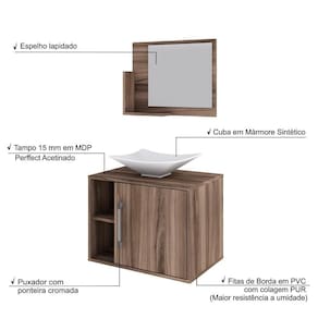 Sobre o ProdutoConjunto Balcão C/Cuba L38 e Espelheira Soft 600 Branco ChessDescrição do Produto:O Conjunto Balcão C/Cuba e Espelheira Soft 600 KTSF600 tem design compacto, perfeito para pequenos espaços, conta com uma prateleira lateral e uma cuba de apoio, além da linha Basic traz móveis funcionais e de design tradicional, aliando simplicidade e estilo para seu ambiente de banheiro!Itens Inclusos:1 Conjunto Balcão C/Cuba e EspelheiraDimensões dos Produtos:Gabinete: 60 x 40 x 45 cmEspelheira: 53 x 10,5 x 42 cmCuba 38,5 x 33 x 11,5 cmInformações Logísticas (Comp. X Prof. X Alt.) 64 x 45 x 26 cm - Peso: 20,45 KgPeso Total: 20,45 KgObservações:Não acompanha acessórios decorativos. Imagens meramente ilustrativas.Informações Técnicas / Características:- Cor do Produto: Branco Chess- Cor do Predominante: Branco- Marca: Compace- Modelo: KTSF600- Linha: Basic- Material: Mdp - Acabamento: Perffect Acetinado- Escala de Brilho: Fosco- Fita de Borda: Pvc- Possui Portas: 1- Tipo de Porta: Bater- Tipo da Dobradiça: Metálica - Material do Puxador: Abs- Possui Prateleiras: 2- Peso Máximo por Prateleira: 1 kg Espelheira / 3 kg Balcão- Possui Pés: Não, suspenso - Possui Espelho: Sim- Possui Vidro: Sim- Acompanha Cuba / Lavatório: Sim, de Mármore Sintético- Furação para Cuba / Lavatório: Não- Tipo da Cuba: Apoio- Cor da Cuba: Branca- Suporta Até (kg): 16 kg - Peso Lí.: 19,03Kg- Recomendações de Uso, Manutenção e Limpeza: Para a limpeza, utilize flanela seca ou pano macio levemente umedecido em água. Utilize um pano seco em seguida. Evite com produtos químicos (solventes, thinner, acetona, etc) e não utilize nenhum tipo de esponja de aço.- Necessita de Montagem: Sim / Acompanha Manual de Montagem- Complexidade da Montagem: Média: pode ser montado por mais de uma pessoa e/ou necessite de maior conhecimento para montagem.- Garantia: 6 meses Material: Mdp | Acabamento: Perffect Acetinado | Escala de Brilho: Fosco | Fita de Borda: Pvc | Possui Portas: 1 | Tipo de Porta: Bater | Tipo da Dobradiça: Metálica | Limite de unidades por venda: É possível comprar até 1 unidade por venda. | Comprimento: 60 | Largura: 40 | Quantidade máxima de pedido: 1 | Altura: 45 | Profundidade: 40 | Preço Tabelado: 307.89999999999998 | Cor: Multicolorido | Certificação de teste externa: Não Aplicável | Baterias são necessárias?: false | Palavras-chave de Pesquisa: Não aplicável | Fonte de energia: Não aplicável | Fabricante: Compace | Peso do item: | Exige montagem: | da peça: | Componentes incluídos: | Principais Características do Produto 1: | Principais Características do Produto 0: | Dimensões do item P x L x A: | Principais Características do Produto 2: | Is Fragile: | de caixas: | do modelo: | Quantidade de itens: Cor: Nogal