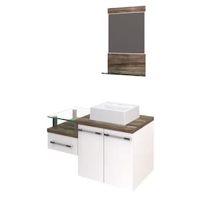 Sobre o ProdutoConjunto Balcão C/Cuba Q32 e Espelheira Legno 831 Branco ChessDescrição do Produto:O Conjunto (Balcão + Cuba + Espelheira) Legno KTLG831 é um produto compacto, de design contemporâneo e minimalista, projetado para se encaixar no seu espaço, composto por um gabinete com gaveta lateral e tampo de apoio de vidro 10mm. A espelheira possui espelho lapidado e 01 prateleira de vidro 10mm, sendo perfeita para organizar suas coisas e fazer parte da decoração do seu linha Legno combina a leveza do branco e detalhes em vidro com tons amadeirados, conferindo uma personalidade contemporânea aos móveis de design minimalista e traços retos. Produtos que aliam funcionalidade e praticidade ao seu dia a dia são características marcantes desta coleção!Itens Inclusos:1 Conjunto Balcão C/Cuba e EspelheiraDimensões dos Produtos:Gabinete: 83 x 43 x 51 cmEspelheira: 37,5 x 11,5 x 67,5 cmCuba 33 x 30 x 10 cmInformações Logísticas (Comp. X Prof. X Alt.) 60 x 50,5 x 58 cm - Peso: 30,59 KgPeso Total: 30,59 KgObservações:Não acompanha acessórios decorativos. Imagens meramente ilustrativas.Informações Técnicas / Características:- Cor do Produto: Branco Chess- Cor do Predominante: Branco- Marca: Compace- Modelo: KTLG831- Linha: Legno- Material: Mdp - Acabamento: Perffect Acetinado- Escala de Brilho: Fosco- Fita de Borda: Pvc- Possui Portas: 2- Tipo de Porta: Bater- Tipo da Dobradiça: Metálica- Possui Gavetas: 1- Tipo da Corrediça: Telescópica- Possui Chave: Não- Peso Máximo por Gaveta: 3 kg- Material do Puxador: Abs- Possui Prateleiras: 2- Peso Máximo por Prateleira: 1 kg Espelheira / 4 kg Balcão- Possui Pés: Não, suspenso - Possui Espelho: Sim- Possui Vidro: Sim- Acompanha Cuba / Lavatório: Sim, de Mármore Sintético- Furação para Cuba / Lavatório: Não- Tipo da Cuba: Apoio- Cor da Cuba: Branca- Suporta Até (kg): 20 kg - Peso Lí.: 28,63Kg- Recomendações de Uso, Manutenção e Limpeza: Para a limpeza, utilize flanela seca ou pano macio levemente umedecido em água. Utilize um pano seco em seguida. Evite com produtos químicos (solventes, thinner, acetona, etc) e não utilize nenhum tipo de esponja de aço.- Necessita de Montagem: Sim / Acompanha Manual de Montagem- Complexidade da Montagem: Média: pode ser montado por mais de uma pessoa e/ou necessite de maior conhecimento para montagem.- Garantia: 6 meses Material: Mdp | Acabamento: Perffect Acetinado | Escala de Brilho: Fosco | Fita de Borda: Pvc | Possui Portas: 2 | Tipo de Porta: Bater | Tipo da Dobradiça: Metálica | Comprimento: 83 | Limite de unidades por venda: É possível comprar até 1 unidade por venda. | Largura: 43 | Quantidade máxima de pedido: 1 | Altura: 51 | Profundidade: 43 | Preço tabelado: 517.32000000000005 | Cor: Multicolorido | Certificação de teste externa: Não Aplicável | Baterias são necessárias?: false | Palavras-chave de Pesquisa: Não aplicável | Fonte de energia: Não aplicável | Fabricante: Compace | da peça: | Exige montagem: | Peso do item: | Componentes incluídos: | Principais Características do Produto 1: | Principais Características do Produto 0: | Dimensões do item P x L x A: | Principais Características do Produto 2: | Is Fragile: | Quantidade de itens: | do modelo: | de caixas: Cor: Branco Chess C/Carvalho Dark