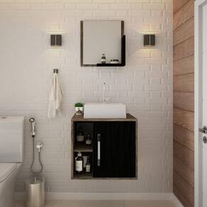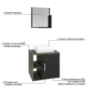 Conjunto Balcão C/cuba Q32 E Espelheira Soft 500 Carvalho Dark C/branco Chess Carvalho Dark C/preto ônix
