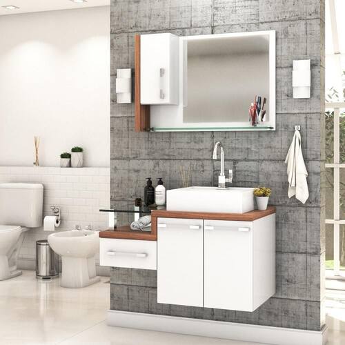 Sobre o ProdutoConjunto Balcão C/Cuba Q39 e Espelheira Legno 830 Branco ChessDescrição do Produto:O Conjunto (Balcão + Cuba + Espelheira) Legno KTLG830 é um produto compacto, de design contemporâneo e minimalista, projetado para se encaixar no seu espaço, composto por um gabinete com gaveta lateral e tampo de apoio de vidro 10mm. A espelheira possui 01 porta, espelho lapidado e 01 prateleira de vidro 10mm, sendo perfeita para organizar suas coisas e fazer parte da decoração do seu linha Legno combina a leveza do branco e detalhes em vidro com tons amadeirados, conferindo uma personalidade contemporânea aos móveis de design minimalista e traços retos. Produtos que aliam funcionalidade e praticidade ao seu dia a dia são características marcantes desta coleção!Itens Inclusos:1 Conjunto Balcão C/Cuba e EspelheiraDimensões dos Produtos:Gabinete: 83 x 43 x 51 cmEspelheira: 77 x 15 x 54 cmCuba 40 x 37,5 x 10 cmInformações Logísticas (Comp. X Prof. X Alt.) 60 x 50,5 x 58 cm - Peso: 27,84 81 x 19 x 59 cm - Peso: 10,685 KgPeso Total: 38,525 KgObservações:Não acompanha acessórios decorativos. Imagens meramente ilustrativas.Informações Técnicas / Características:- Cor do Produto: Branco Chess- Cor do Predominante: Branco- Marca: Compace- Modelo: KTLG830- Linha: Legno- Material: Mdp - Acabamento: Perffect Acetinado- Escala de Brilho: Fosco- Fita de Borda: Pvc- Possui Portas: 3- Tipo de Porta: Bater- Tipo da Dobradiça: Metálica- Possui Gavetas: 1- Tipo da Corrediça: Telescópica- Possui Chave: Não- Peso Máximo por Gaveta: 3 kg- Material do Puxador: Abs- Possui Prateleiras: 2- Peso Máximo por Prateleira: 1 kg Espelheira / 4 kg Balcão- Possui Pés: Não, suspenso - Possui Espelho: Sim- Possui Vidro: Sim- Acompanha Cuba / Lavatório: Sim, de Mármore Sintético- Furação para Cuba / Lavatório: Não- Tipo da Cuba: Apoio- Cor da Cuba: Branca- Suporta Até (kg): 20 kg - Peso Lí.: 35,49Kg- Recomendações de Uso, Manutenção e Limpeza: Para a limpeza, utilize flanela seca ou pano macio levemente umedecido em água. Utilize um pano seco em seguida. Evite com produtos químicos (solventes, thinner, acetona, etc) e não utilize nenhum tipo de esponja de aço.- Necessita de Montagem: Sim / Acompanha Manual de Montagem- Complexidade da Montagem: Média: pode ser montado por mais de uma pessoa e/ou necessite de maior conhecimento para montagem.- Garantia: 6 meses Material: Mdp | Acabamento: Perffect Acetinado | Escala de Brilho: Fosco | Fita de Borda: Pvc | Possui Portas: 3 | Tipo de Porta: Bater | Tipo da Dobradiça: Metálica | Tipo de Produto: Gabinete de Banheiro | Fabricante: Compace | Limite de unidades por venda: É possível comprar até 1 unidade por venda. | Quantidade máxima de pedido: 1 | Comprimento: 83 | Largura: 43 | Altura: 51 | Profundidade: 43 | Preço tabelado: | Cor: Multicolorido | Certificação de teste externa: Não Aplicável | Baterias são necessárias?: false | Palavras-chave de Pesquisa: Não aplicável | Fonte de energia: Não aplicável | Peso do item: | Exige montagem: | da peça: | Componentes incluídos: | Dimensões do item P x L x A: | Principais Características do Produto 1: | Principais Características do Produto 2: | Principais Características do Produto 0: | Is Fragile: | de caixas: | Quantidade de itens: | do modelo: Cor: Branco Chess C/Nogal