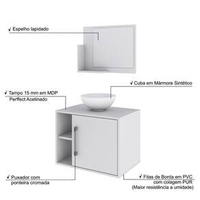 Conjunto Balcão C/cuba R30 E Espelheira Soft 600 - Branco Chess C/branco Chess Branco Chess C/branco Chess Sobre o ProdutoConjunto Balcão C/Cuba R30 e Espelheira Soft 600 Branco ChessDescrição do Produto:O Conjunto Balcão C/Cuba e Espelheira Soft 600 KTSF600 tem design compacto, perfeito para pequenos espaços, conta com uma prateleira lateral e uma cuba de apoio, além da linha Basic traz móveis funcionais e de design tradicional, aliando simplicidade e estilo para seu ambiente de banheiro!Itens Inclusos:1 Conjunto Balcão C/Cuba e EspelheiraDimensões dos Produtos:Gabinete: 60 x 40 x 45 cmEspelheira: 53 x 10,5 x 42 cmCuba 30,5 x 30,5 x 12,5 cmInformações Logísticas (Comp. X Prof. X Alt.) 64 x 45 x 26 cm - Peso: 20,14 KgPeso Total: 20,14 KgObservações:Não acompanha acessórios decorativos. Imagens meramente ilustrativas.Informações Técnicas / Características:- Cor do Produto: Branco Chess- Cor do Predominante: Branco- Marca: Compace- Modelo: KTSF600- Linha: Basic- Material: Mdp - Acabamento: Perffect Acetinado- Escala de Brilho: Fosco- Fita de Borda: Pvc- Possui Portas: 1- Tipo de Porta: Bater- Tipo da Dobradiça: Metálica - Material do Puxador: Abs- Possui Prateleiras: 2- Peso Máximo por Prateleira: 1 kg Espelheira / 3 kg Balcão- Possui Pés: Não, suspenso - Possui Espelho: Sim- Possui Vidro: Sim- Acompanha Cuba / Lavatório: Sim, de Mármore Sintético- Furação para Cuba / Lavatório: Não- Tipo da Cuba: Apoio- Cor da Cuba: Branca- Suporta Até (kg): 16 kg - Peso Lí.: 18,72Kg- Recomendações de Uso, Manutenção e Limpeza: Para a limpeza, utilize flanela seca ou pano macio levemente umedecido em água. Utilize um pano seco em seguida. Evite com produtos químicos (solventes, thinner, acetona, etc) e não utilize nenhum tipo de esponja de aço.- Necessita de Montagem: Sim / Acompanha Manual de Montagem- Complexidade da Montagem: Média: pode ser montado por mais de uma pessoa e/ou necessite de maior conhecimento para montagem.- Garantia: 6 meses Material: Mdp | Acabamento: Perffect Acetinado | Escala de Brilho: Fosco | Fita de Borda: Pvc | Possui Portas: 1 | Tipo de Porta: Bater | Tipo da Dobradiça: Metálica | Limite de unidades por venda: É possível comprar até 1 unidade por venda. | Comprimento: 60 | Largura: 40 | Quantidade máxima de pedido: 1 | Altura: 45 | Profundidade: 40 | Preço Tabelado: | Cor: Multicolorido | Certificação de teste externa: Não Aplicável | Baterias são necessárias?: false | Palavras-chave de Pesquisa: Não aplicável | Fonte de energia: Não aplicável | Fabricante: Compace | Principais Características do Produto 0: | Dimensões do item P x L x A: | Exige montagem: | Is Fragile: | Principais Características do Produto 2: | da peça: | Principais Características do Produto 1: | Componentes incluídos: | Peso do item: | do modelo: | de caixas: | Quantidade de itens: Cor: Branco Chess C/Branco Chess