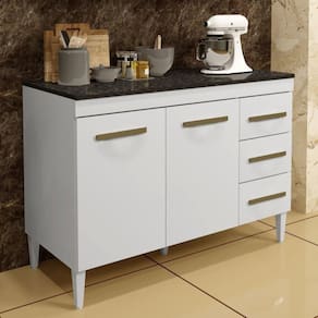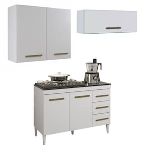 Otimize o espaço da sua cozinha utilizando nosso Balcão, ele conta com muito espaço para organizar os seus utensílios mais utilizados durante o dia. Dê um toque especial em sua cozinha com esse versátil e charmoso Balcão. E o Armário Aéreo que se apresenta de forma primorosa e versátil, pois o design permitem uma grande variedade de combinações entre estilos e tons de pisos, revestimentos, eletrodomésticos e mesas. Acabamento: Pintura UV Altura do Conjunto: 86 cm Ambiente: null Ambiente Principal: Cozinha Cor: Branco Informação Complementar: 1x Balcão de Cozinha com Tampo 2 Portas 3 Gavetas Virtus Branco Largura: 120 cm Altura: 86 cm Peso: 42 kg Profundidade: 53 cm Necessita Montagem: Sim