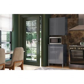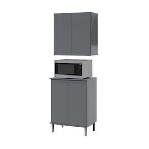 Conjunto Balcao E Armario Areo Cinza Balcão Micro-ondas e Armário Aéreo 2 Portas