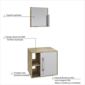 O Conjunto Balcão e Espelheira Soft 500 GESF500 tem design compacto, perfeito para pequenos espaços, conta com uma prateleira lateral e espelheira.