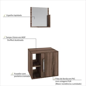 - Peso Máximo por Prateleira: 1 kg Espelheira / 3 kg Balcão