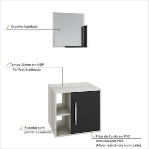 Conjunto Balcão e Espelheira GESF500 Perffect Acetinado