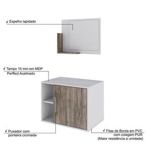 O Conjunto Balcão e Espelheira Soft 600 GESF600 tem design compacto, perfeito para pequenos espaços, conta com uma prateleira lateral e uma cuba de apoio, além da espelheira.