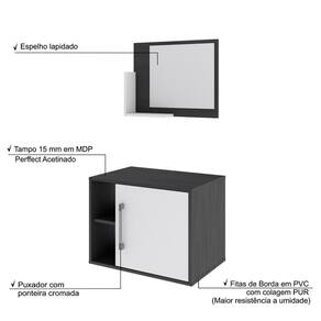 O Conjunto Balcão e Espelheira Soft 600 GESF600 tem design compacto, perfeito para pequenos espaços, conta com uma prateleira lateral e uma cuba de apoio, além da espelheira.