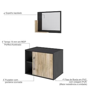 O Conjunto Balcão e Espelheira Soft 600 GESF600 tem design compacto, perfeito para pequenos espaços, conta com uma prateleira lateral e uma cuba de apoio, além da espelheira.