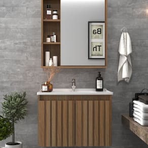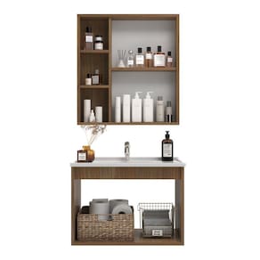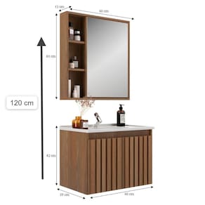 O Conjunto para banheiro Alpes da Belizze vai combinar com o seu bom gosto. Compacto, prático, moderno e cheio de estilo, pois conta com uma espelheira espaçosa, com muito espaço interno e é perfeita para combinar com seu ambiente, tendo 60cm de largura, 12cm de profundidade e 61cm de altura. Com todo charme do MDF, o balcão suspenso, com detalhe em ripado possui duas portas com abertura sem puxadores, 60cm de largura, e profundidade de 37cm. Um conjunto que remete à praticidade e elegância, afinal, sua casa merece. Acabamento da Cuba: Polido Acabamento da Porta: MDF Acompanha Cuba: Sim Acompanha Tampo: Sim Acompanha Válvula: Não Ambiente Principal: Banheiro codigo_ean: 7900288108982 Complexidade da Montagem: Baixa: pode ser montado por uma pessoa sozinha Cor: Noce Cor da Cuba: Branco Cor do Produto: Noce Escala de Brilho: Fosco Escala de Brilho da Porta: Fosco Espessura do Espelho: 3 mm Formato do Espelho: Retangular Furação para Cuba e Torneira: Sim Itens Inclusos: 1 Balcão, 1 Espelheira e 1 Tampo Manual de Montagem e Instalação: https://product-hub-prd.madeiramadeira.com.br/983906/documents/8887ac08-eefe-4609-975c-4bd0072527a32780618566517436045295515.pdf Marca: Belizze Material da Cuba: Mármore Sintético Material da Porta: MDF/MDP Material do Tampo: Mármore Sintético Material Principal: MDF Medida da Cuba (C x L x P): 60 x 37,5 x 2,7 Medida da Espelheira (A x L x P): 61x60x12 Medida do Gabinete (A x L x P): 42x60x37 Necessita Montagem: Sim Origem do Produto: Nacional Peso: 22,4 kg Possui Espelheira: Sim Possui Gabinete: Sim Possui Gavetas: Não Possui iluminação: Não Possui Pés: Suspenso Possui Rodízio: Não Produto Montado: Sim Recomendações de Uso, Manutenção e Limpeza: Retire o pó com uma flanela seca e depois utilize um pano macio umedecido com água. Não utilizar produtos químicos e abrasivos. Sistema de Montagem: Parafuso, Cavilhas, cola Tamanho do Espelho (A x L): 61x40 Tipo de Cuba: Embutir Tipo de Dobradiça/Corrediça da Porta: Com Amortecedor Tipo de Gabinete: Gabinete Suspenso Tipo de Porta: Abrir Tipo de Puxador da Porta: Não Contém