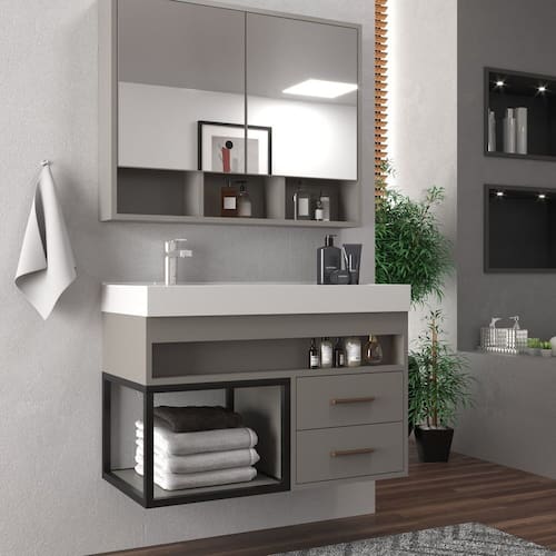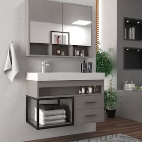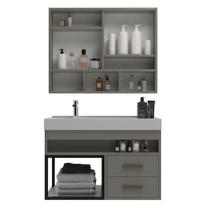 O Conjunto para banheiro Avant da Belizze vai combinar com o seu bom gosto. Compacto, prático e moderno, pois conta com uma variedade de materiais, metal e todo charme do MDF de 15cm. Ele tem 80cm de largura, e profundidade de 40cm. Já vem com uma moderna espelheira de 80cm de largura por 68cm de altura deixando tudo mais elegante e combinando com seu ambiente. Os puxadores são um detalhe especial, e remetem à praticidade. Além de tudo isso, conta com uma estrutura metálica, que além de prático dá um detalhe de beleza adicional, afinal, sua casa merece. Acabamento da Cuba: Polido Acabamento da Gaveta: Fosco Acabamento da Porta: MDF Acabamento da Prateleira: BP Acompanha Cuba: Sim Acompanha Gaveteiro: Sim Acompanha Manual de Instalação: Sim Acompanha Parafusos Para Fixação Na Parede: Não Acompanha Tampo: Sim Acompanha Válvula: Não Ambiente Principal: Banheiro codigo_ean: 7900288055927 Complexidade da Montagem: Baixa: pode ser montado por uma pessoa sozinha Cor: Cimento Cor da Cuba: Branco Cor da Gaveta: Cinza Cor do Produto: Cimento Cor Interna: cimento/cimento Escala de Brilho: Fosco Escala de Brilho da Porta: Fosco Escala de Brilho da Prateleira: Fosco Espessura do Espelho: 3 mm Formato do Espelho: Retangular Formato Espelheira: Retangular Furação para Cuba e Torneira: Sim Gaveta com Chave: Não Itens Inclusos: 1 gabinete, 1 cuba, 1 espelheira e 1 tubo metálico Manual de Montagem e Instalação: https://product-hub-prd.madeiramadeira.com.br/975942/documents/12bb54dd-06f6-46e7-a3a0-677f72ac2815265550956651738170067938.pdf Marca: Belizze Material da Cuba: Mármore Sintético Material da Gaveta: MDF Material da Porta: MDF Material da Prateleira: MDF Material do Tampo: Mármore Sintético Material Principal: MDF/Madeira Medida da Cuba (C x L x P): 7 x 40 x 78,5 Medida da Espelheira (A x L x P): 68x80x12 Medida do Gabinete (A x L x P): 56x80x40 Necessita Montagem: Sim Origem do Produto: Nacional Peso: 34,3 kg Peso Máximo por Gaveta: 30 kg Peso Máximo por Prateleira: 30 kg Possui Espelheira: Sim Possui Gabinete: Sim Possui iluminação: Não Possui Nichos: Não Possui Pés: Suspenso Possui Porta de Vidro: Não Possui Rodízio: Não Possui Sifão: Não Possui Tampo: Sim Possui Tampo de Vidro: Não Produto Montado: Sim Quantidade de Espelhos: 04 Espelhos com Tamanhos Iguais Recomendações de Uso, Manutenção e Limpeza: Retire o pó com uma flanela seca e depois utilize um pano macio umedecido com água. Não utilizar produtos químicos e abrasivos. Sistema de Montagem: Parafuso, Cavilhas, cola Suporte para Toalheiro: Não Tamanho do Espelho (A x L): 68x80 Tamanho do Gabinete: Médio: de 60cm a 80cm de largura Tipo de Corrediça da Gaveta: Metálica Telescópica Tipo de Cuba: Embutir Tipo de Dobradiça/Corrediça da Porta: Com Amortecedor Tipo de Gabinete: Gabinete Suspenso Tipo de Porta: Abrir Tipo de Puxador da Gaveta: Externo Tipo de Puxador da Porta: Não Possui