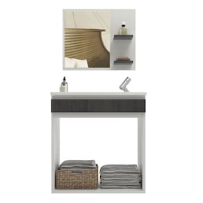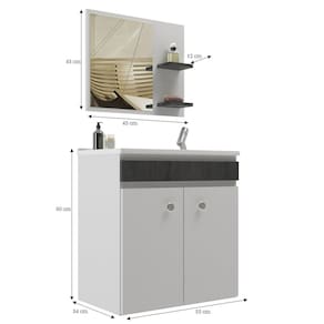 Conjunto Balcão para Banheiro com Espelheira Palermo 55 Suspenso Branco/Carbono