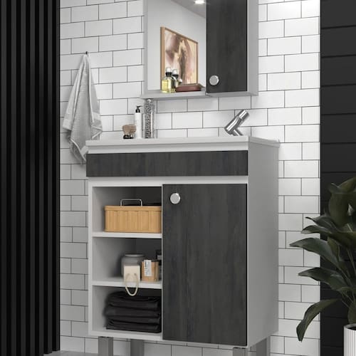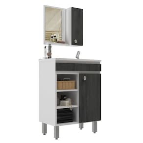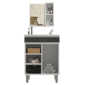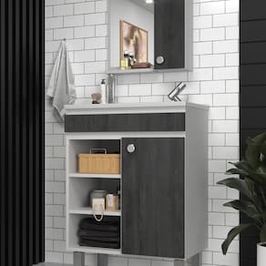Conjunto Balcão para Banheiro com Espelheira Siena 55 Branco/ Carbono