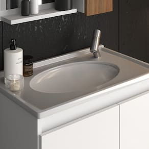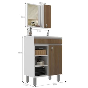 O Conjunto de Banheiro Siena tem tudo o que você precisa em um só produto. Gaveta larga de 55cm, porta com acabamento moderno e puxador ponto, Nichos organizadores e espelheiro com porta, prateleira e um aparador frontal. Possui um porta escovas no interior da porta È um produto compacto, mas com espaço de sobra para organizar tudo do seu jeito. Acompanha pés reguláveis para deixar o produto firme e nivelado, além o acabamento impecável e moderno. Acabamento da Cuba: Polido Acabamento da Porta: BP Acabamento dos Pés: ABS Acompanha Cuba: Sim Acompanha Parafusos Para Fixação Na Parede: Não Acompanha Tampo: Sim Altura dos Pés: 14,5 cm Ambiente Principal: Banheiro Complexidade da Montagem: Baixa: pode ser montado por uma pessoa sozinha Cor: Branco Cor da Cuba: Branco Cor do Produto: Branco Cor Interna: Branco Escala de Brilho: Fosco Escala de Brilho da Porta: Fosco Espessura do Espelho: 1,5 mm Formato do Espelho: Retangular Furação para Cuba e Torneira: Sim Informações Complementares: Acompanha um porta escovas Itens Inclusos: 1 gabinete, 1 cuba e 1 espelheira Manual de Especificação Técnica: https://cdn2.madeiramadeira.com.br/atributo/belizze/2049020-5665-17183711838651.pdf Manual de Montagem e Instalação: https://cdn2.madeiramadeira.com.br/atributo/belizze/2049019-5665-17183711795156.pdf Material da Cuba: Mármore Sintético Material da Porta: MDF Material do Puxador da Porta: PVC/Cromado Material do Tampo: Mármore Sintético Material dos Pés: PVC Material Principal: MDF Medida da Cuba (C x L x P): 1,5 x 55 x 34 Medida da Espelheira (A x L x P): 43 x 45 x 12 Medida do Gabinete (A x L x P): 83 x 55 x 34 Necessita Montagem: Sim Origem do Produto: Nacional Pés Reguláveis: Sim Peso: 18,9 kg Possui Espelheira: Sim Possui Gabinete: Sim Possui Gavetas: Não Possui iluminação: Não Possui Nichos: Sim Possui Pés: 04 Possui Porta de Vidro: Não Possui Portas: 01 Possui Recorte No Tampo Para Cuba: Sim Possui Recorte No Tampo Para Misturador: Não Possui Rodízio: Não Possui Sifão: Não Possui Tampo: Sim Produto Montado: Não Recomendações de Uso, Manutenção e Limpeza: Retire o pó com uma flanela seca e depois utilize um pano macio umedecido com água. Não utilizar produtos químicos e abrasivos. Sapatas Niveladoras: Não Sistema de Montagem: Parafusos, cavilhas, dobradiças metálicas, cola... Suporta Até (kg): 15 kg Suporte para Toalheiro: Não Tamanho do Espelho (A x L): 47 x 28 Tipo de Dobradiça/Corrediça da Porta: Metálica Tipo de Fixação do Espelho: Fita Dupla Face Tipo de Gabinete: Gabinete de Chão Tipo de Porta: Bater Tipo de Puxador da Porta: Externo