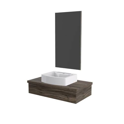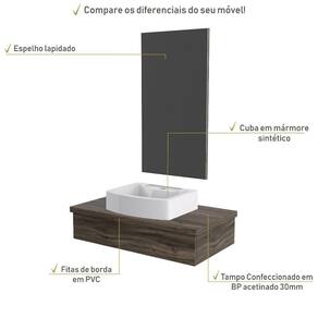 Conjunto Bancada C/cuba Aria 41 E Espelheira Metrópole 801 Carvalho Carvalho Dark