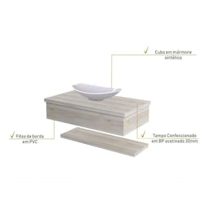 Conjunto Bancada C/cuba L45 E Prateleira Metrópole 805 Preto ônix Snow Sobre o ProdutoConjunto Bancada C/Cuba L45 e Prateleira Metrópole 805 Branco ChessDescrição do Produto:O Conjunto (Bancada + Cuba + Prateleira) Metrópole KTME805 é um produto compacto de design simples e moderno, projetado para pequenos espaços, perfeito para fazer parte da decoração do seu lavabo ou banheiro. Conta com uma cuba de apoio e uma prateleira com pinos invisíveis, além do suporte linha Metrópole é uma coleção de móveis modernos e com inúmeras possibilidades de composições, combinando design contemporâneo e muita funcionalidade. Diversas possibilidades de cores e modelos de cubas formam uma solução perfeita para as mais opções de decoração e projetos em ambientes de banheiro. É você quem decide!!!Itens Inclusos:1 Conjunto Bancada C/Cuba e PrateleiraDimensões dos Produtos:Bancada: 80 x 43 x 19 cmCuba 45 x 30,7 x 11,5 cmInformações Logísticas (Comp. X Prof. X Alt.) 83 x 47 x 26 cm - Peso: 18,09 KgPeso Total: 18,09 KgObservações:Não acompanha acessórios decorativos. Imagens meramente ilustrativas.Informações Técnicas / Características:- Cor do Produto: Branco Chess- Cor do Predominante: Branco- Marca: Compace- Modelo: KTME805- Linha: Metrópole- Material: Mdp - Acabamento: Perffect Acetinado- Escala de Brilho: Fosco- Fita de Borda: Pvc - Possui Gavetas: Não - Material do Puxador: Alumínio- Possui Prateleiras: 1- Peso Máximo por Prateleira: 02 kg- Possui Pés: Não, suspenso - Possui Espelho: Não - Acompanha Cuba / Lavatório: Sim, de Mármore Sintético- Furação para Cuba / Lavatório: Não- Tipo da Cuba: Apoio- Cor da Cuba: Branca- Suporta Até (kg): 12 kg - Peso Lí.: 17,02Kg- Recomendações de Uso, Manutenção e Limpeza: Para a limpeza, utilize flanela seca ou pano macio levemente umedecido em água. Utilize um pano seco em seguida. Evite com produtos químicos (solventes, thinner, acetona, etc) e não utilize nenhum tipo de esponja de aço.- Necessita de Montagem: Sim / Acompanha Manual de Montagem- Complexidade da Montagem: Média: pode ser montado por mais de uma pessoa e/ou necessite de maior conhecimento para montagem.- Garantia: 6 meses- Outras Características: Montagem ível, o suporte toalheiro pode ser montado em qualquer um dos lados. Material: Mdp | Acabamento: Perffect Acetinado | Escala de Brilho: Fosco | Fita de Borda: Pvc | Tipo de Produto: Bancada para Banheiro | 80: Largura | Limite de unidades por venda: É possível comprar até 1 unidade por venda. | 19: Profundidade | Quantidade máxima de pedido: 1 | 42: Preço tabelado | Cor: Multicolorido | Certificação de teste externa: Não Aplicável | Baterias são necessárias?: false | Palavras-chave de Pesquisa: Não aplicável | Fonte de energia: Não aplicável | da peça: KTME805 | Fabricante: Compace | Principais Características do Produto 2: | Principais Características do Produto 1: | Exige montagem: | Is Fragile: | Peso do item: | Componentes incluídos: | Principais Características do Produto 0: | Dimensões do item P x L x A: | do modelo: | de caixas: | Quantidade de itens: Cor: Snow