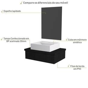 Conjunto Bancada C/cuba Q39 E Espelheira Metrópole 601 Nogal Preto ônix