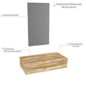 Sobre o ProdutoConjunto Bancada e Espelheira KTME802 Branco ChessDescrição do Produto:O Conjunto (Bancada + Espelheira) Metrópole KTME802 é um produto compacto de design simples e moderno, projetado para pequenos espaços, perfeito para fazer parte da decoração do seu lavabo ou banheiro. Conta com uma espelheira com espelho lapidado, além do suporte linha Metrópole é uma coleção de móveis modernos e com inúmeras possibilidades de composições, combinando design contemporâneo e muita funcionalidade. Diversas possibilidades de cores e modelos de cubas formam uma solução perfeita para as mais opções de decoração e projetos em ambientes de banheiro. É você quem decide!!!Itens Inclusos:1 Conjunto Bancada e EspelheiraDimensões dos Produtos:Bancada: 80 x 43 x 19 cm: Informações Logísticas (Comp. X Prof. X Alt.) 83 x 47 x 26 cm - Peso: 9,93 KgPeso Total: 9,93 KgObservações:Não acompanha acessórios decorativos. Imagens meramente ilustrativas.Informações Técnicas / Características:- Cor do Produto: Branco Chess- Cor do Predominante: Branco- Marca: Compace- Modelo: KTME802- Linha: Metrópole- Material: Mdp - Acabamento: Perffect Acetinado- Escala de Brilho: Fosco- Fita de Borda: Pvc - Possui Gavetas: Não - Material do Puxador: Alumínio - Possui Pés: Não, suspenso - Possui Espelho: Sim - Acompanha Cuba / Lavatório: Não- Furação para Cuba / Lavatório: Não - Suporta Até (kg): 10 kg - Peso Lí.: 8,86Kg- Recomendações de Uso, Manutenção e Limpeza: Para a limpeza, utilize flanela seca ou pano macio levemente umedecido em água. Utilize um pano seco em seguida. Evite com produtos químicos (solventes, thinner, acetona, etc) e não utilize nenhum tipo de esponja de aço.- Necessita de Montagem: Sim / Acompanha Manual de Montagem- Complexidade da Montagem: Média: pode ser montado por mais de uma pessoa e/ou necessite de maior conhecimento para montagem.- Garantia: 6 meses- Outras Características: Montagem ível, o suporte toalheiro pode ser montado em qualquer um dos lados. Material: Mdp | Acabamento: Perffect Acetinado | Escala de Brilho: Fosco | Fita de Borda: Pvc | Fabricante: Compace | Comprimento: 80 | Largura: 42 | Limite de unidades por venda: É possível comprar até 1 unidade por venda. | Altura: 19 | Profundidade: 42 | Quantidade máxima de pedido: 1 | Preço tabelado: 279.72000000000003 | Cor: Multicolorido | Certificação de teste externa: Não Aplicável | Baterias são necessárias?: false | Palavras-chave de Pesquisa: Não aplicável | Fonte de energia: Não aplicável | Componentes incluídos: | Peso do item: | Is Fragile: | Exige montagem: | da peça: | Principais Características do Produto 0: | Dimensões do item P x L x A: | Principais Características do Produto 2: | Principais Características do Produto 1: | do modelo: | de caixas: | Quantidade de itens: Cor: Carvalho