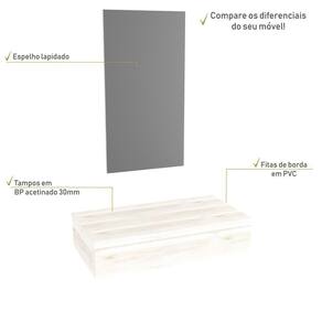 Sobre o ProdutoConjunto Bancada e Espelheira KTME802 Branco ChessDescrição do Produto:O Conjunto (Bancada + Espelheira) Metrópole KTME802 é um produto compacto de design simples e moderno, projetado para pequenos espaços, perfeito para fazer parte da decoração do seu lavabo ou banheiro. Conta com uma espelheira com espelho lapidado, além do suporte linha Metrópole é uma coleção de móveis modernos e com inúmeras possibilidades de composições, combinando design contemporâneo e muita funcionalidade. Diversas possibilidades de cores e modelos de cubas formam uma solução perfeita para as mais opções de decoração e projetos em ambientes de banheiro. É você quem decide!!!Itens Inclusos:1 Conjunto Bancada e EspelheiraDimensões dos Produtos:Bancada: 80 x 43 x 19 cm: Informações Logísticas (Comp. X Prof. X Alt.) 83 x 47 x 26 cm - Peso: 9,93 KgPeso Total: 9,93 KgObservações:Não acompanha acessórios decorativos. Imagens meramente ilustrativas.Informações Técnicas / Características:- Cor do Produto: Branco Chess- Cor do Predominante: Branco- Marca: Compace- Modelo: KTME802- Linha: Metrópole- Material: Mdp - Acabamento: Perffect Acetinado- Escala de Brilho: Fosco- Fita de Borda: Pvc - Possui Gavetas: Não - Material do Puxador: Alumínio - Possui Pés: Não, suspenso - Possui Espelho: Sim - Acompanha Cuba / Lavatório: Não- Furação para Cuba / Lavatório: Não - Suporta Até (kg): 10 kg - Peso Lí.: 8,86Kg- Recomendações de Uso, Manutenção e Limpeza: Para a limpeza, utilize flanela seca ou pano macio levemente umedecido em água. Utilize um pano seco em seguida. Evite com produtos químicos (solventes, thinner, acetona, etc) e não utilize nenhum tipo de esponja de aço.- Necessita de Montagem: Sim / Acompanha Manual de Montagem- Complexidade da Montagem: Média: pode ser montado por mais de uma pessoa e/ou necessite de maior conhecimento para montagem.- Garantia: 6 meses- Outras Características: Montagem ível, o suporte toalheiro pode ser montado em qualquer um dos lados. Material: Mdp | Acabamento: Perffect Acetinado | Escala de Brilho: Fosco | Fita de Borda: Pvc | Fabricante: Compace | Comprimento: 80 | Largura: 42 | Limite de unidades por venda: É possível comprar até 1 unidade por venda. | Altura: 19 | Profundidade: 42 | Quantidade máxima de pedido: 1 | Preço tabelado: 279.72000000000003 | Cor: Multicolorido | Certificação de teste externa: Não Aplicável | Baterias são necessárias?: false | Palavras-chave de Pesquisa: Não aplicável | Fonte de energia: Não aplicável | Componentes incluídos: | Peso do item: | Is Fragile: | Exige montagem: | da peça: | Principais Características do Produto 0: | Dimensões do item P x L x A: | Principais Características do Produto 2: | Principais Características do Produto 1: | do modelo: | de caixas: | Quantidade de itens: Cor: Snow