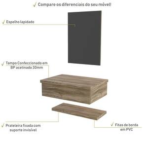 Conjunto Bancada, Prateleira E Espelheira Ktme607 Branco Chess Carvalho